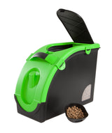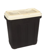 Een voerton voor hondenvoer is gemaakt van duurzaam plastic en heeft een goed afsluitbaar deksel om het voer luchtdicht af te sluiten. Dit helpt om de versheid van het voer te behouden en voorkomt dat er vocht of ongedierte bij komt.