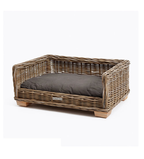 Klassiek en tijdloos: Het rieten hondenbed, verkrijgbaar met een optioneel grijs katoenen hondenkussen, heeft een klassiek en tijdloos ontwerp dat naadloos in elk interieur past.
