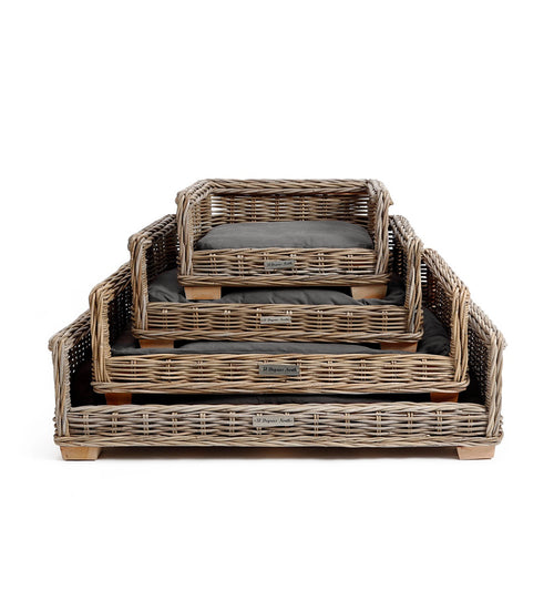 Veelzijdig ontwerp: Het rechthoekige rieten hondenbed en het bijpassende apart verkrijgbare katoenen hondenkussen uit de Rattan collectie van 51 Degrees North zijn verkrijgbaar in vier verschillende maten, waardoor er voor elk huisdier, groot of klein, een geschikte optie is.