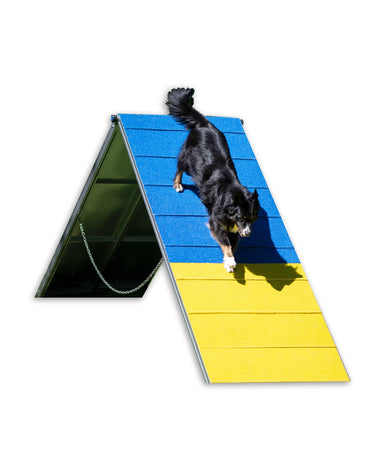 Deze A-schutting is echte kwaliteit en geschikt voor wedstrijden want hij is gebouwd volgens de FCI richtlijnen voor agility toestellen. Deze A-wand is gemaakt van aluminium profielen en heeft een rubberen antislip loopvlak.