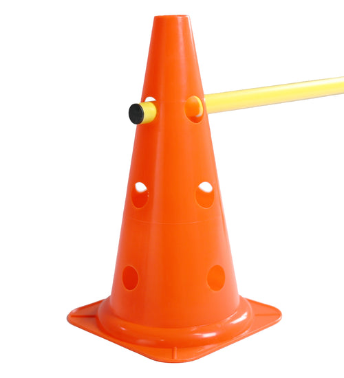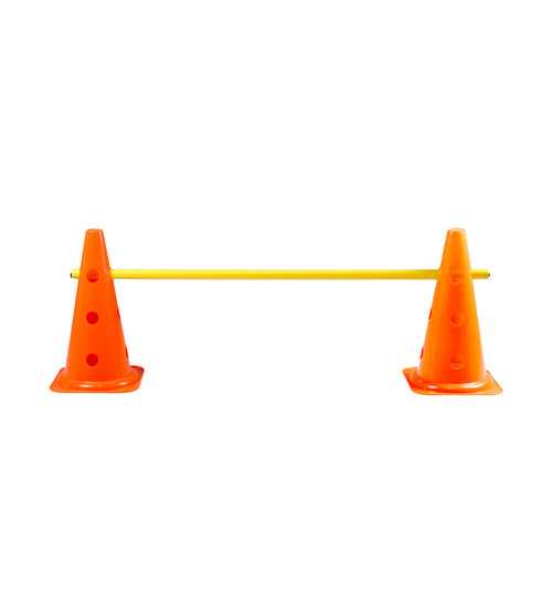 De pylonen zijn voorzien van 3 gaten en daardoor is de springhoogte eenvoudig te verstellen.
