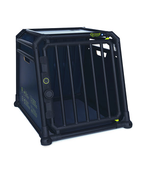 Het slot is uitgerust met het “Double Dock” systeem, waardoor de deur nooit naar binnen kan vallen, zelfs niet bij een crash. Het “Safelock Systeem” maakt het mogelijk de box snel en eenvoudig te openen, terwijl het voorkomt dat de hond zelf de deur kan openen.