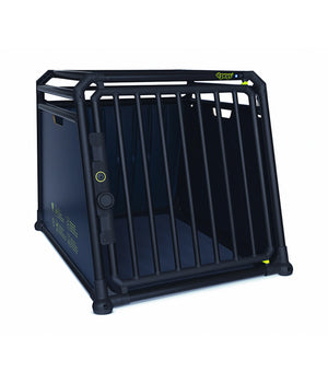 Het slot is uitgerust met het “Double Dock” systeem, waardoor de deur nooit naar binnen kan vallen, zelfs niet bij een crash. Het “Safelock Systeem” maakt het mogelijk de box snel en eenvoudig te openen, terwijl het voorkomt dat de hond zelf de deur kan openen.