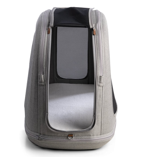 Binnenin zorgen twee inbegrepen matrasjes voor maximaal comfort: een stevige standaardmatras en een luxe comfortmatras, behandeld met een milieuvriendelijke, antimicrobiële technologie tegen geur veroorzakende bacteriën. Beide matrasjes zijn wasbaar in de machine. De buitenkant is gemaakt van duurzame materialen met een beschermende stoflaag die bestand is tegen intensief gebruik, en afgewerkt met stijlvolle vegan lederen accenten.