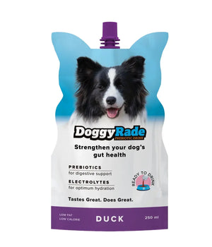Geef je hond de beste start met DoggyRade, de heerlijke en gezonde isotone drank. Speciaal ontwikkeld om de darmgezondheid te ondersteunen en de weerstand te versterken.