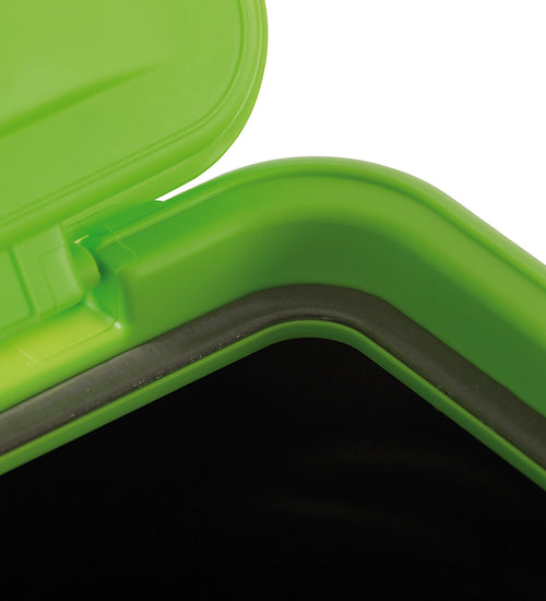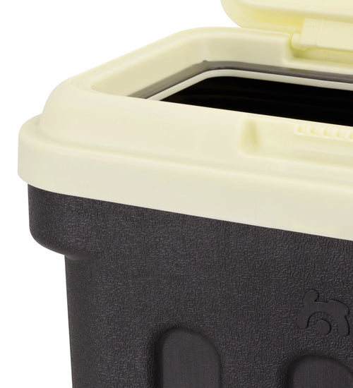 In het deksel is een afdichtende schuimrand aangebracht. Zo kan er geen lucht bij het voer komen en kan ongedierte niet door de kleine openingen kruipen.