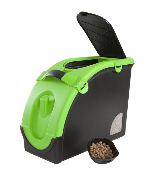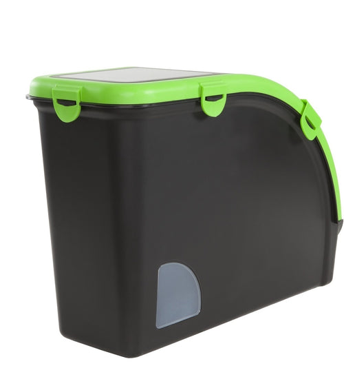 Er past eenvoudig een zak van 12,5 kg hondenvoer in deze drybox.