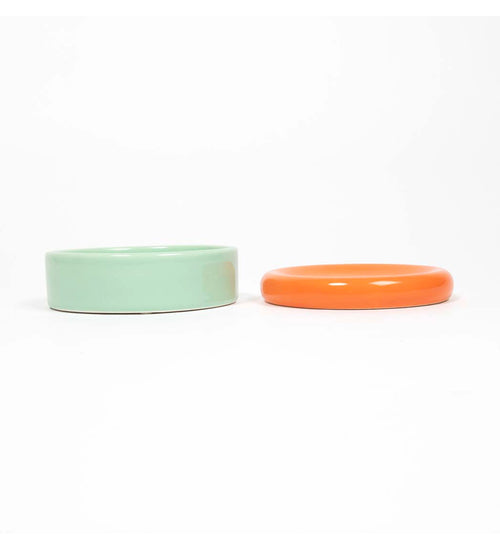 Deze set van een bakje en een schotel is niet alleen praktisch, maar ook een vrolijke toevoeging aan je interieur. De schotel vangt gemorst water of voer op en houdt de eetplek netjes.