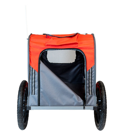 Verder heeft deze fietskar aan de achterkant een rits waarmee het aangekoppeld in en uitstappen van uw viervoeter veel eenvoudiger wordt.