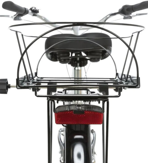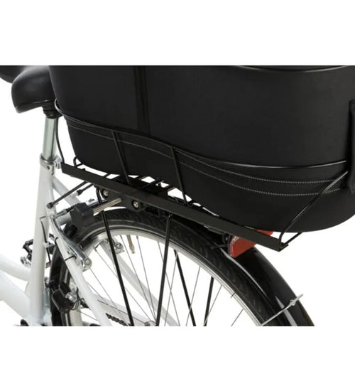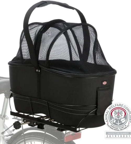 De Fietsmand Long voor bagagedragers is een veilige en comfortabele oplossing om je hond mee te nemen op de fiets. Dankzij het stevige metalen frame wordt je huisdier stabiel en betrouwbaar vervoerd, zelfs bij langere fietstochten. De mand is eenvoudig te bevestigen op bagagedragers met een breedte van 6 tot 16 cm en kan met klittenband losgemaakt worden van het frame wanneer dat nodig is. De gaas-afdekking zorgt ervoor dat je hond veilig in de mand blijft, terwijl hij toch voldoende frisse lucht krijgt. Voor extra veiligheid is de mand voorzien van een geïntegreerde korthouder en reflecterende elementen, zodat je beter zichtbaar bent in het verkeer. Binnenin ligt een uitneembare, gevoerde mat met een zachte pluche bekleding voor extra comfort. De mand is gemaakt van vormvast EVA-materiaal en uitgevoerd in stijlvol zwart. Geschikt voor honden tot 8 kg en getest door een onafhankelijk instituut op dierenwelzijn en dierenbescherming. Afmetingen: 29 × 49 × 60 cm.