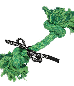 Gun uw hond ook een mooi en degelijk speeltouw. Dit Floss touw met 2 knopen en een lengte van 30cm in de kleur groen is van stevig gedraaid katoen. Het flosstouw heeft een hoge kwaliteit tot in de kern van het touw.