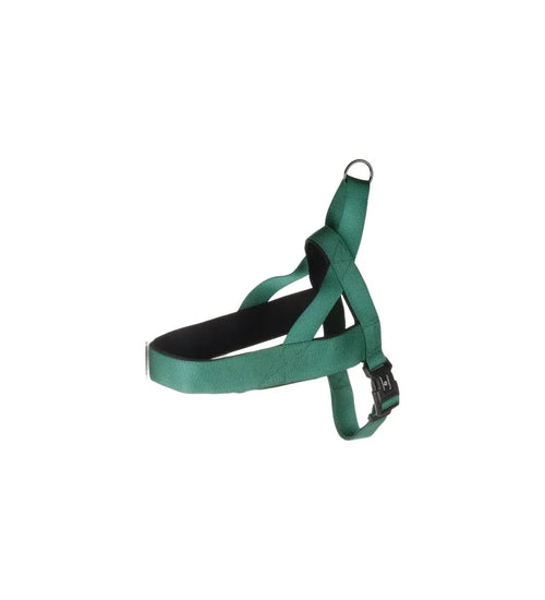 Dit tuigje is bijzonder eenvoudig om te doen: je schuift het gewoon over de kop van je hond en klikt de sluiting vast – je hond hoeft er niet in te stappen. Het is gemaakt van stevig nylon met een zachte binnenvoering en traploos verstelbaar voor een perfecte pasvorm. De handige kliksluiting maakt het aan- en uittrekken snel en gemakkelijk, terwijl de metalen D-ring met glanzende donkergrijze afwerking zorgt voor een veilige bevestiging van de hondenlijn. Voor extra controle is het tuigje uitgerust met een handvat. Beschikbaar in maat XXL (A: 62 cm, B: 75–100 cm, 32 mm × 3 mm) en verkrijgbaar in diverse kleuren.
