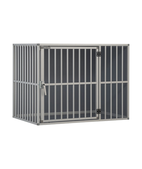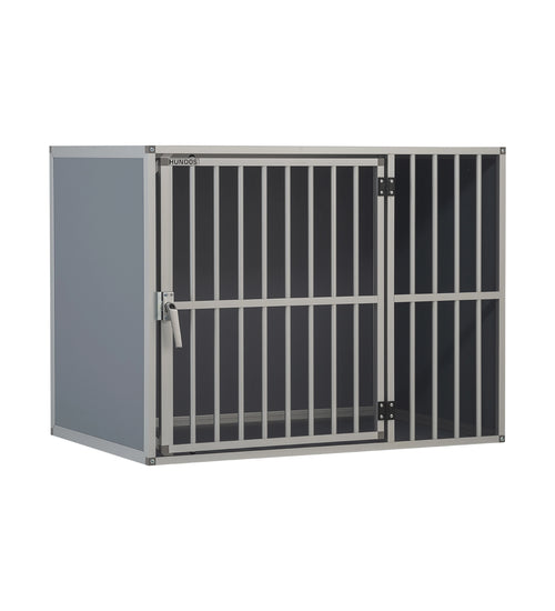 Deze hondenbench wordt geproduceerd van geanodiseerd aluminium en het plaatwerk is grijs kunststof met een honingraat structuur voor extra stevigheid. Dit kunststof is volledig te recyclen. Verder is deze kunststof plaat thermisch en akoestisch isolerend. De aluminium hondenbench is door de keuze van het materiaal licht in gewicht en erg makkelijk te reinigen. Een vochtige doek met zeep is voldoende om smeer en haren te verwijderen uit de bench. Zo blijft uw hond schoon en kan de Hundos Hondenbench model DL maat L lang mee.