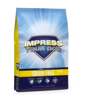 Impress Your Dog Grain Free is een volledig graanvrij diervoeder dat speciaal is ontwikkeld om jouw hond gezond en energiek te houden. Laat jouw hond genieten van een natuurlijke en voedzame maaltijd zonder granen!