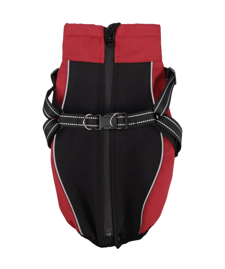 Wat deze jas echt bijzonder maakt, is het traploos verstelbare tuigje dat is ingebouwd in het ontwerp. Het tuigje heeft een handige kliksluiting en is voorzien van twee ringen voor trekontlasting, waardoor de druk op het slot vermindert en je hond veilig en comfortabel blijft tijdens elke wandeling.