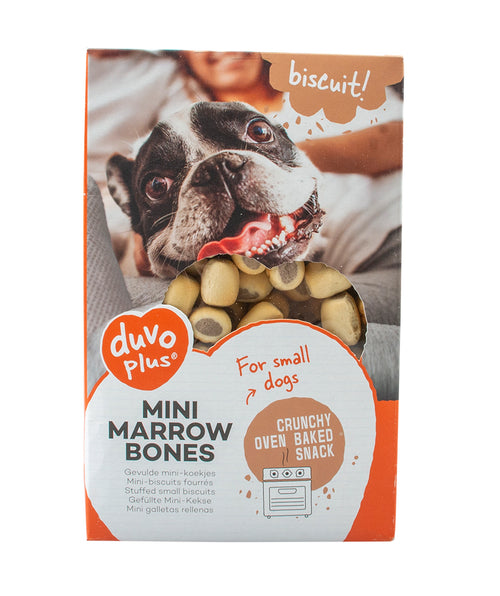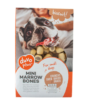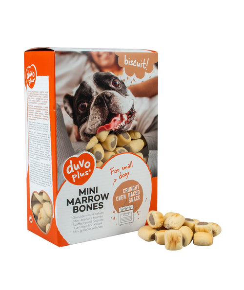 Laat je hond genieten van de onweerstaanbare smaak van duvoplus Hondenkoekjes Mini Mergpijpjes – de klassieke traktatie in klein formaat.