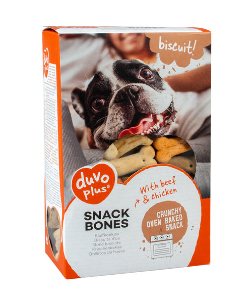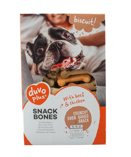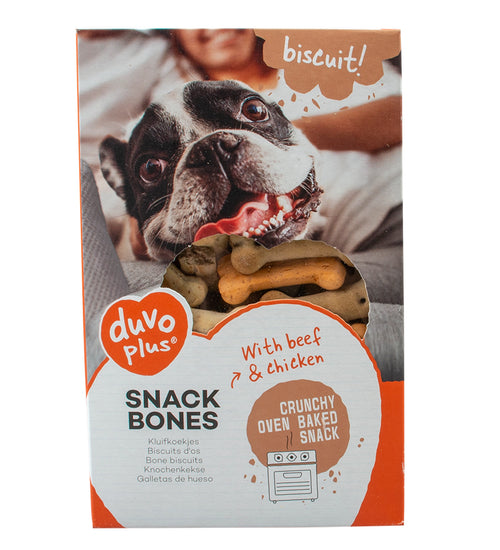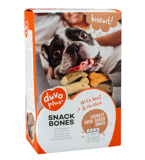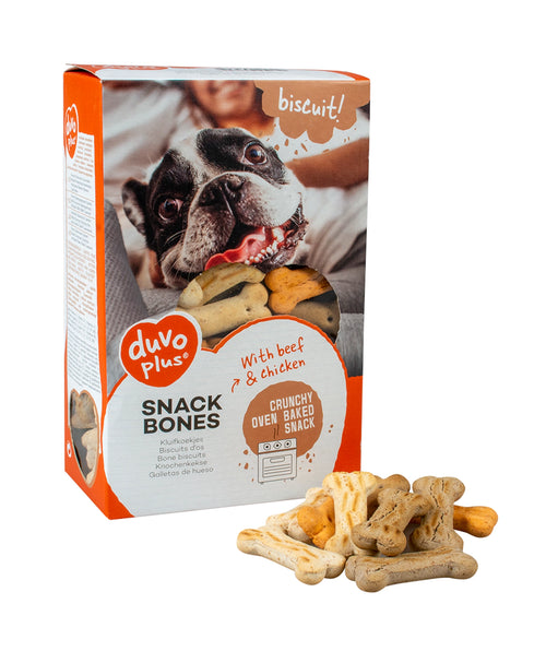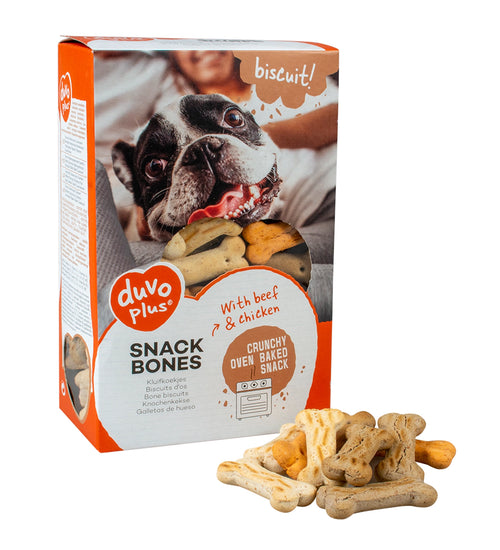 Verwen je hond met de lekkere ovengebakken hondenkoekjes van duvoplus! Deze krokante snackkluifjes hebben een heerlijke smaak van rund en kip en zijn perfect geschikt als tussendoortje of beloning. Dankzij hun ovengebakken kwaliteit zijn ze extra krokant en onweerstaanbaar lekker voor elke hond. Niet te veel snoepen – deze snackjes mogen tot maximaal 20% van het dagelijkse menu uitmaken.