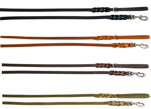 Hondenriem country leer gevlochten 16 mm breed 130 cm  lang
