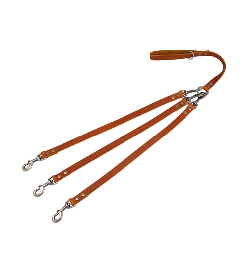 Deze prachtige hondenriem is gemaakt van 1e klas leer en heeft als functie gekoppeld te worden aan een andere lijn. Dit zorgt ervoor dat u twee of drie honden kan koppelen aan één lijn. Deze lijn word aangeboden in vier kleuren: