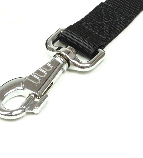 Deze hondenriem is gemaakt van sterk nylon. De riem is 130 cm lang en 2,5 cm breed en uitgerust met een sterke karabijnhaak om de halsband en de hondenlijn te koppelen. De kleur is blauw en de riem bevat een degelijk handvat.