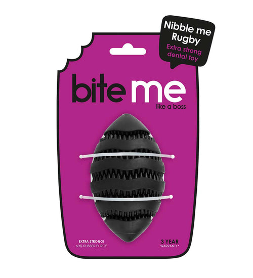 Met de Nibble Me Rugby geef je je hond een supersterk speeltje dat plezier, uitdaging en tandverzorging in één combineert.