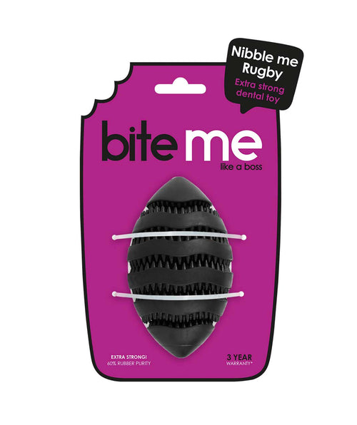 De Nibble Me Rugby zwart is een sterk en veelzijdig hondenspeeltje dat zorgt voor eindeloos kauw- en speelplezier. Gemaakt van 60% natuurlijk rubber is dit speelgoed duurzaam, veilig en extra stevig – ideaal voor honden die graag kauwen.