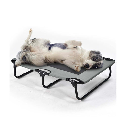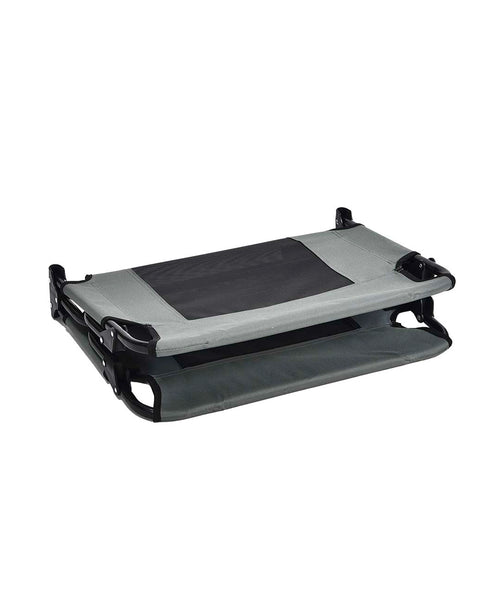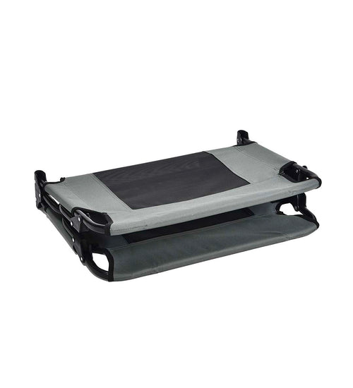 Dankzij het open ontwerp zonder randen kan de hond vrij liggen en zich volledig uitstrekken. Het verhoogde ligoppervlak zorgt voor extra ventilatie en voorkomt direct contact met een koude of vochtige ondergrond. Dit maakt de hondenstretcher zeer geschikt voor zowel binnen- als buitengebruik.