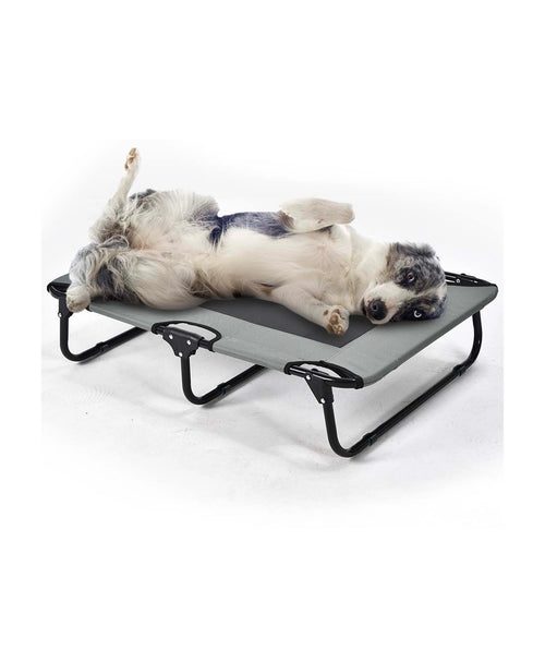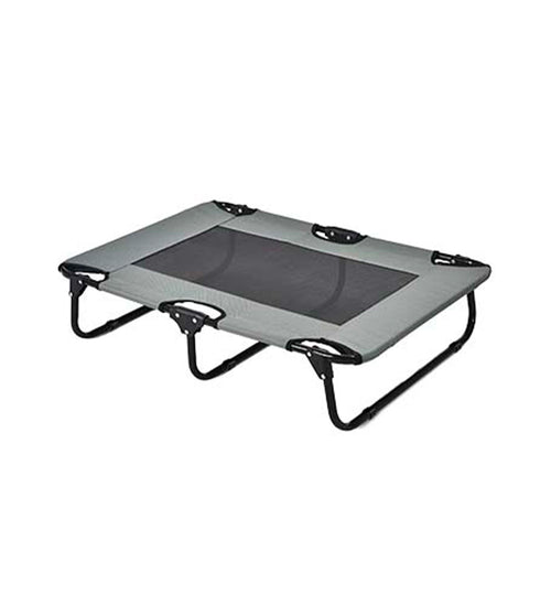Het stevige metalen frame is overspannen met een ademende nylon stof die zorgt voor optimale luchtcirculatie. Hierdoor krijgen vocht en onaangename geurtjes geen kans. Het ergonomische ligoppervlak vormt zich naar het lichaam van de hond en helpt gewrichten en spieren te ontlasten tijdens het rusten.