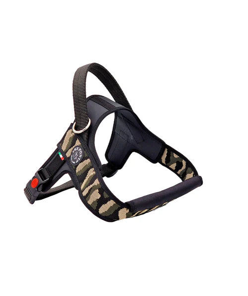 Aanpassingen en modellen: Indien het tuig wat ruim lijkt, kan de noodgreep gebruikt worden om het aan te passen voor een perfecte pasvorm. De Primo Plus tuigen zijn verkrijgbaar in verschillende kleuren, waaronder zwart reflecterend en camouflage.