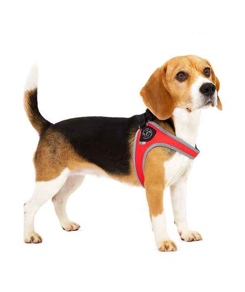 Omdat dit een vast tuigje is, hoeft het niet telkens opnieuw bijgesteld te worden en is het perfect zodra je hond is uitgegroeid. De reflecterende randen zorgen bovendien voor extra veiligheid in het donker of bij slecht weer.