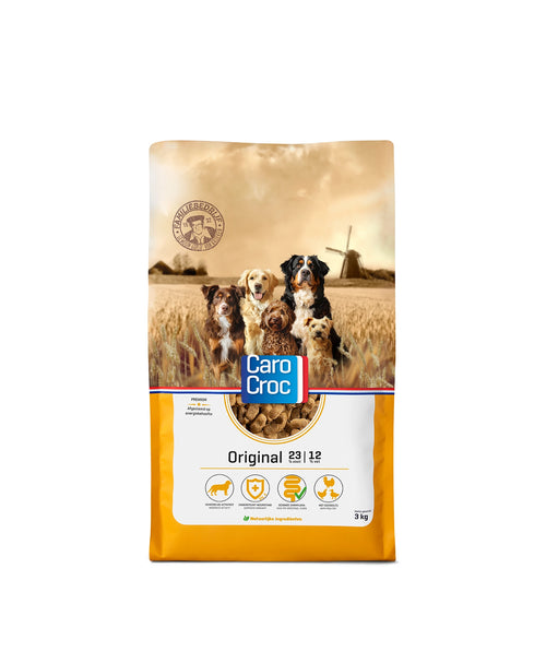 Is je hond gezond en blijft hij met relatief lichte lichamelijke inspanning gemakkelijk op gewicht, dan is CaroCroc Original 23/12 een passende voeding.