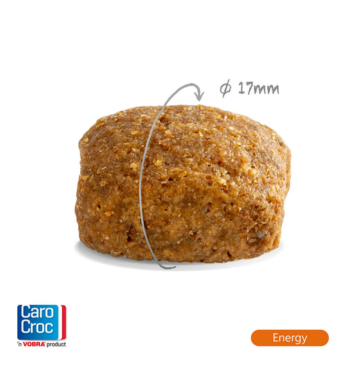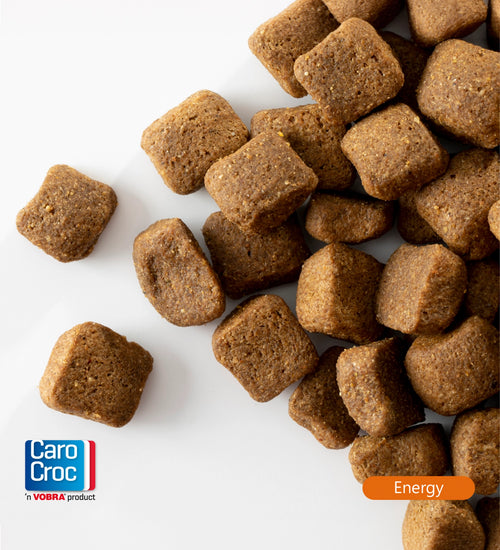 De CaroCroc Energy brokken zijn speciaal samengesteld voor de energieke viervoeters die zware inspanningen leveren. De brokken bevatten een hoog eiwit- en vetgehalte en streng geselecteerde grondstoffen, waardoor jouw hond in topconditie blijft