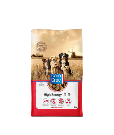 Verwacht je periodiek extreme inspanning en prestaties van je hond. Denk hierbij aan honden tijdens het jachtseizoen of die bijvoorbeeld aan agility of endurance doen. Voorkom tekorten en voer je hond tijdens deze periode CaroCroc High Energy 28/20.