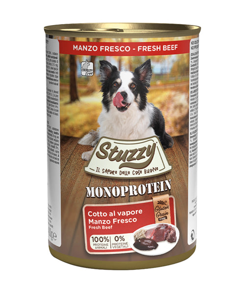 Stuzzy Hondenvoer Paté Monoprotein Rund 400g – hoogwaardige monoprotein natvoeding met rund als enige eiwitbron.