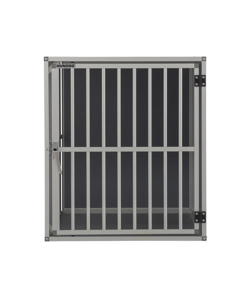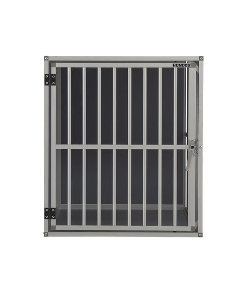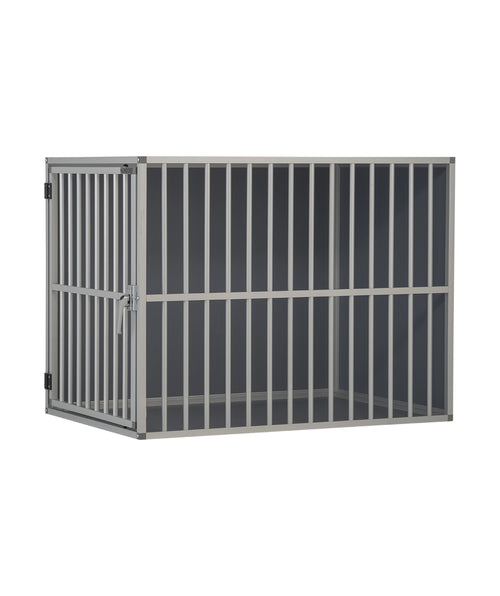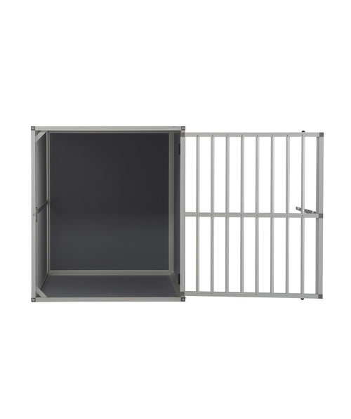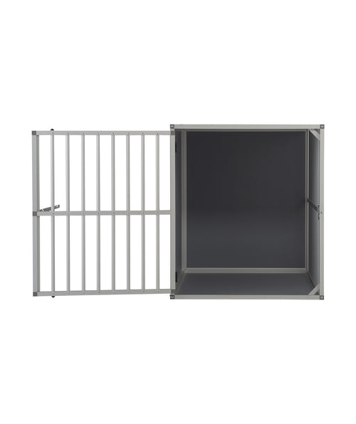 Deze luxe hondenbench is ontwikkeld met oog voor de geborgenheid van de hond. Door de keuze van twee open wanden met spijlen en twee dichte wanden met platen voelt de hond zich thuis en veilig in de bench.