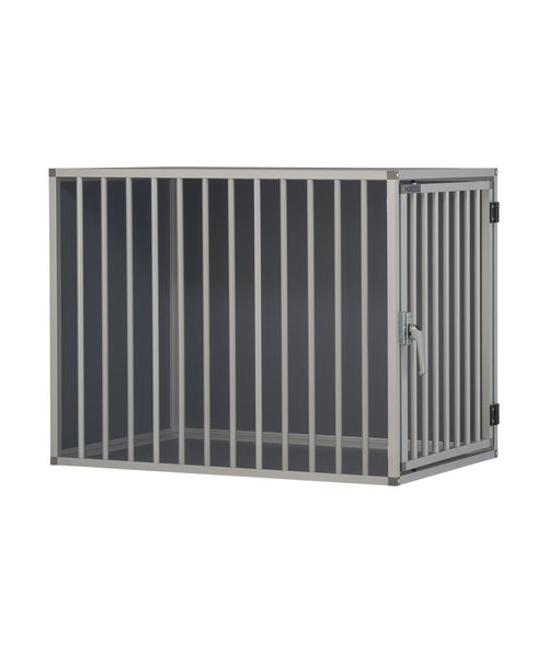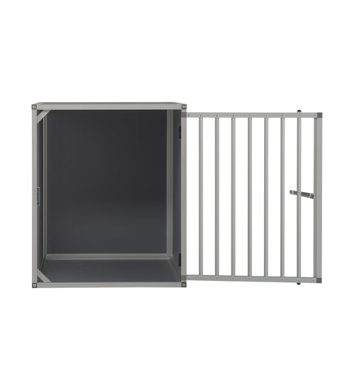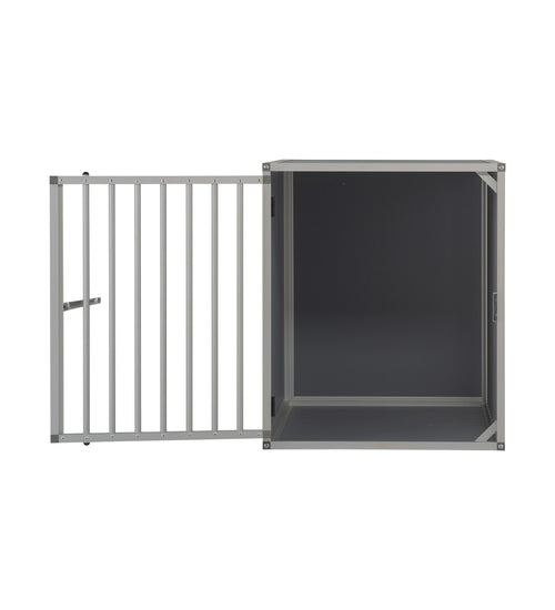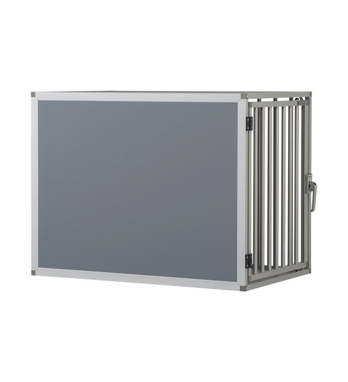 Deze luxe hondenbench is ontwikkeld met oog voor de geborgenheid van de hond. Door de keuze van twee open wanden met spijlen en twee dichte wanden met platen voelt de hond zich thuis en veilig in de bench.