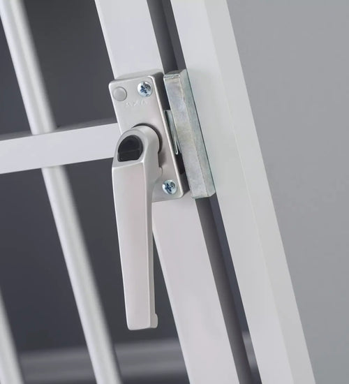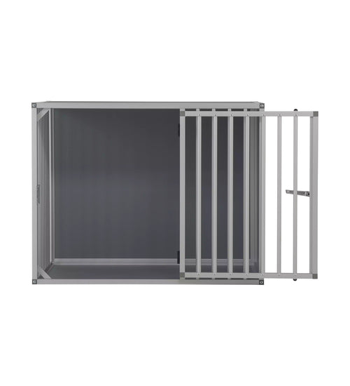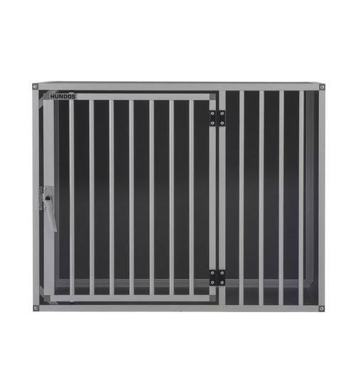De deur van deze bench bevindt zich in de lange wand. De draai richting van de deur kan naar links of naar rechts. Het hang en sluitwerk is van degelijk metaal. Door het plaatsen van een deuraanslag kan de deur van de kooi nooit naar binnen in de bench vallen. Daarnaast is de grendel van de bench voorzien van een drukknop, zo kan de hond nooit uit zichzelf de bench openen.
