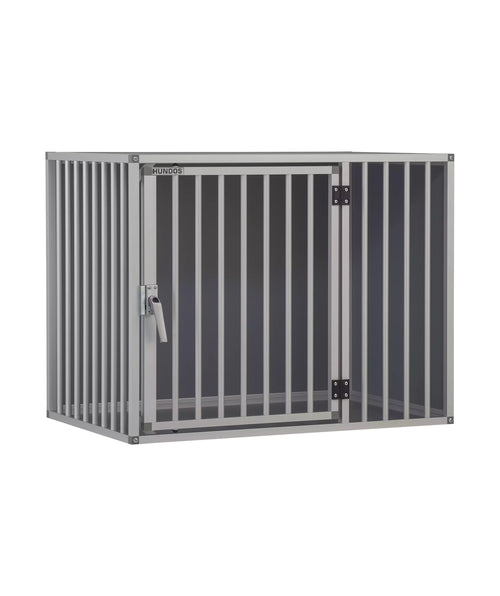 Deze hondenbench wordt geproduceerd van geanodiseerd aluminium en het plaatwerk is grijs kunststof met een honingraat structuur voor extra stevigheid. Dit kunststof is volledig te recyclen. Verder is deze kunststof plaat thermisch en akoestisch isolerend. De aluminium hondenbench is door de keuze van het materiaal licht in gewicht en erg makkelijk te reinigen. Een vochtige doek met zeep is voldoende om smeer en haren te verwijderen uit de bench. Zo blijft uw hond schoon en kan de Hundos hondenbench model DL maat M lang mee.