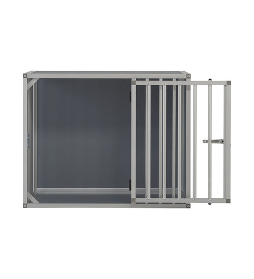 De deur van deze bench bevindt zich in de lange wand. De draai richting van de deur kan naar links of naar rechts. Het hang en sluitwerk is van degelijk metaal. Door het plaatsen van een deuraanslag kan de deur van de kooi nooit naar binnen in de bench vallen. Daarnaast is de grendel van de bench voorzien van een drukknop, zo kan de hond nooit uit zichzelf de bench openen.