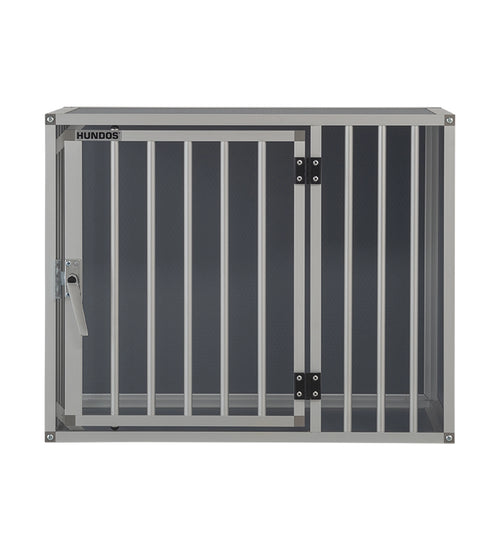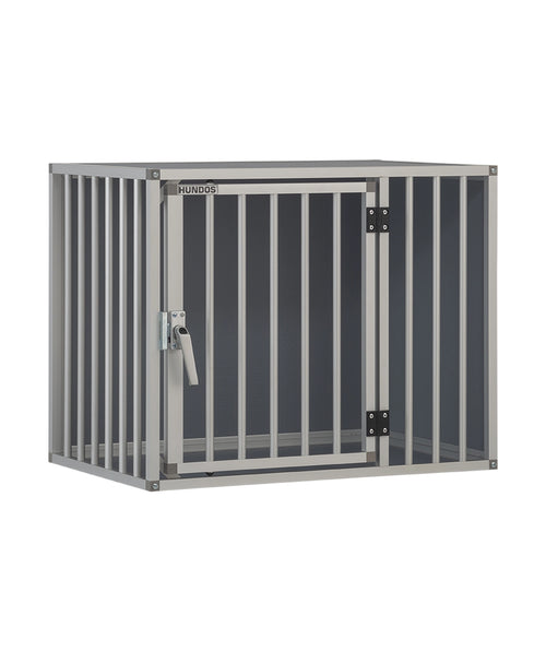 Deze hondenbench wordt geproduceerd van geanodiseerd aluminium en het plaatwerk is grijs kunststof met een honingraat structuur voor extra stevigheid. Dit kunststof is volledig te recyclen. Verder is deze kunststof plaat thermisch en akoestisch isolerend. De aluminium hondenbench is door de keuze van het materiaal licht in gewicht en erg makkelijk te reinigen. Een vochtige doek met zeep is voldoende om smeer en haren te verwijderen uit de bench. Zo blijft uw hond schoon en kan de Hundos hondenbench model DL maat S lang mee.