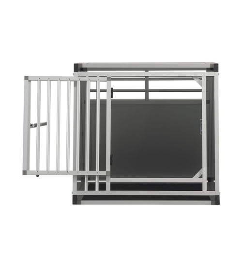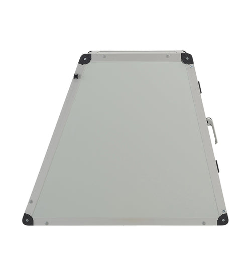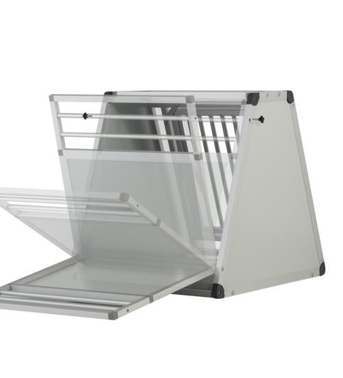 De autobench is geproduceerd van geanodiseerde aluminium en het plaatwerk is lichtgrijs alupanel. Het hang en sluitwerk is van degelijk ijzer. De spijlen deur is degelijk geproduceerd en door de diameter van 16mm is het voor honden bijna onmogelijk om de spijlen te buigen. De spijlen in de voor- en achterwanden fungeren als ventilatie zo krijgt uw hond genoeg frisse lucht tijdens een lange autorit.