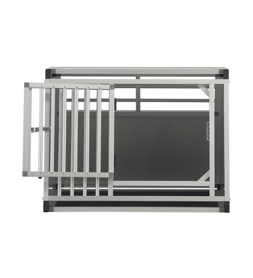 De autobench is geproduceerd van geanodiseerde aluminium en het plaatwerk is lichtgrijs alupanel. Het hang en sluitwerk is van degelijk ijzer. De spijlen deur is degelijk geproduceerd en door de diameter van 16mm is het voor honden bijna onmogelijk om de spijlen te buigen. De spijlen in de voor- en achterwanden fungeren als ventilatie zo krijgt uw hond genoeg frisse lucht tijdens een lange autorit.