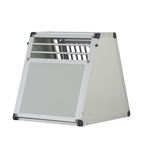 De autobench is geproduceerd van geanodiseerde aluminium en het plaatwerk is lichtgrijs alupanel. Het hang en sluitwerk is van degelijk ijzer. De spijlen deur is degelijk geproduceerd en door de diameter van 16mm is het voor honden bijna onmogelijk om de spijlen te buigen. De spijlen in de voor- en achterwanden fungeren als ventilatie zo krijgt uw hond genoeg frisse lucht tijdens een lange autorit.