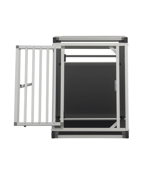 De autobench is geproduceerd van geanodiseerde aluminium en het plaatwerk is lichtgrijs alupanel. Het hang en sluitwerk is van degelijk ijzer. De spijlen deur is degelijk geproduceerd en door de diameter van 16mm is het voor honden bijna onmogelijk om de spijlen te buigen. De spijlen in de voor- en achterwanden fungeren als ventilatie zo krijgt uw hond genoeg frisse lucht tijdens een lange autorit.