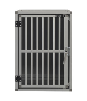 De Hundos Autobench Recht model 100x47x67cm is geproduceerd van geanodiseerd aluminium en het plaatwerk is lichtgrijs alupanel. Het hang en sluitwerk is van degelijk ijzer. De spijlen deur is degelijk geproduceerd en door de spijl diameter van 16mm is het voor honden bijna onmogelijk om de spijlen te buigen. Tevens is de deur voorzien van een extra dwarskoker in het midden ter versteviging.