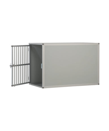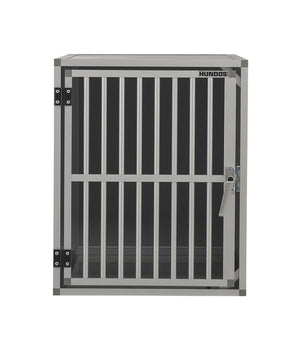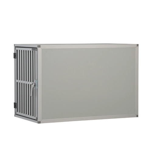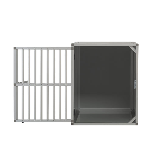 De Autobench Recht model 100x55x67cm is geproduceerd van geanodiseerd aluminium en het plaatwerk is lichtgrijs alupanel. Het hang en sluitwerk is van degelijk ijzer. De spijlen deur is degelijk geproduceerd en door de spijl diameter van 16mm is het voor honden bijna onmogelijk om de spijlen te buigen. Tevens is de deur voorzien van een extra dwarskoker in het midden ter versteviging.