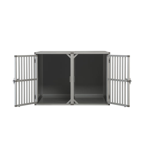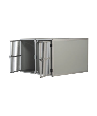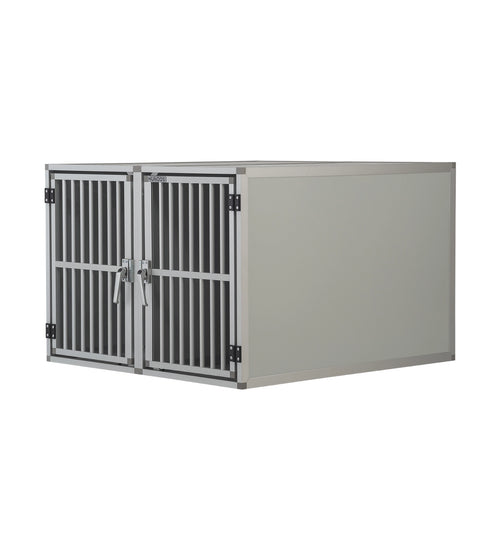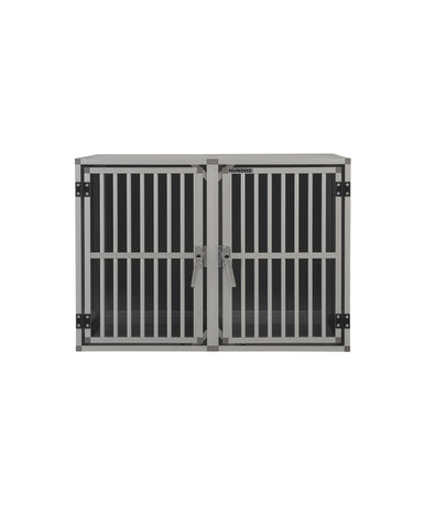 De Autobench Recht Model Dubbel 100x95x67 is geproduceerd van geanodiseerd aluminium en het plaatwerk is lichtgrijs alupanel. Het hang en sluitwerk is van degelijk ijzer. De spijlen deuren zijn degelijk geproduceerd en door de spijl diameter van 16mm is het voor honden bijna onmogelijk om de spijlen te buigen. Tevens zijn de deuren voorzien van een extra dwarskoker in het midden ter versteviging.