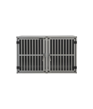 De Autobench Recht model Dubbel 100x110x67 is geproduceerd van geanodiseerd aluminium en het plaatwerk is lichtgrijs alupanel. Het hang en sluitwerk is van degelijk ijzer. De spijlen deuren zijn degelijk geproduceerd en door de spijl diameter van 16mm is het voor honden bijna onmogelijk om de spijlen te buigen. Tevens zijn de deuren voorzien van een extra dwarskoker in het midden ter versteviging.