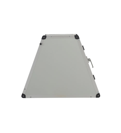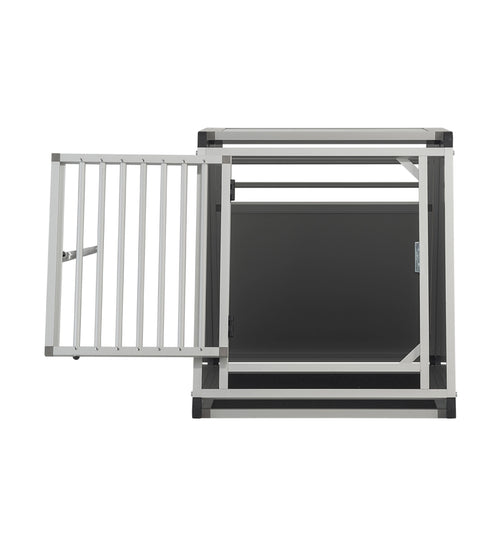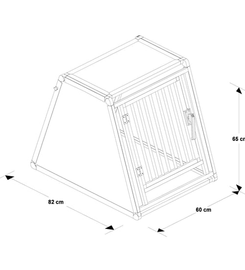 De autobench is geproduceerd van geanodiseerde aluminium en het plaatwerk is lichtgrijs alupanel. Het hang en sluitwerk is van degelijk ijzer. De spijlen deur is degelijk geproduceerd en door de diameter van 16mm is het voor honden bijna onmogelijk om de spijlen te buigen. De spijlen in de voor- en achterwanden fungeren als ventilatie zo krijgt uw hond genoeg frisse lucht tijdens een lange autorit.