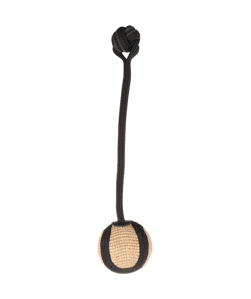 Het Juru speelgoed met bal is een stoer en duurzaam speeltje dat je hond urenlang speelplezier biedt. Gemaakt van stevig jute met een geïntegreerde bal is dit speelgoed perfect voor trek- en apporteerspelletjes.